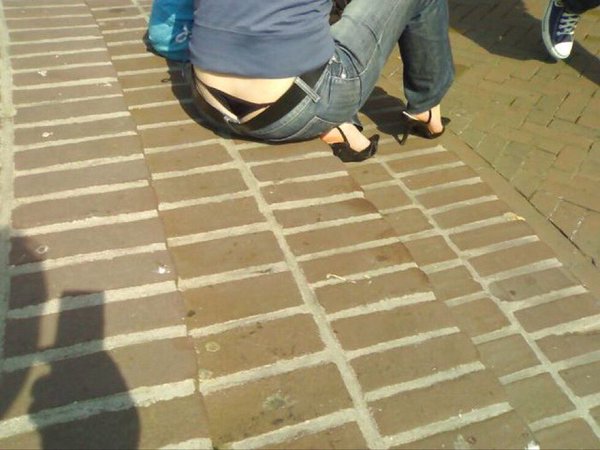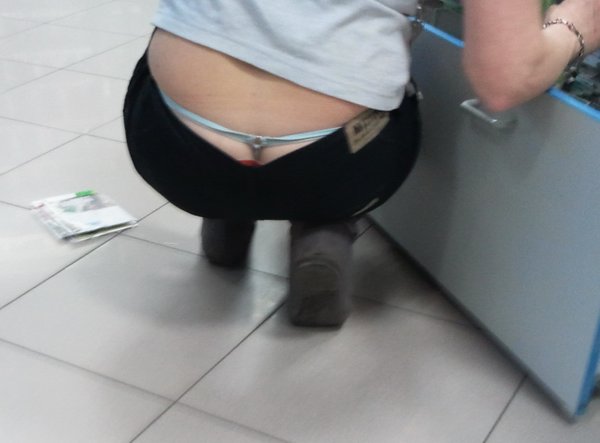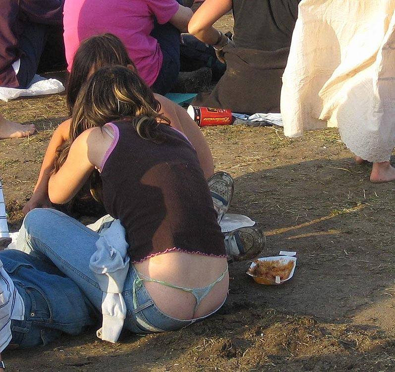 【エロ画像】堂々と見ていいはず!最初からハミ出しローライズTバック